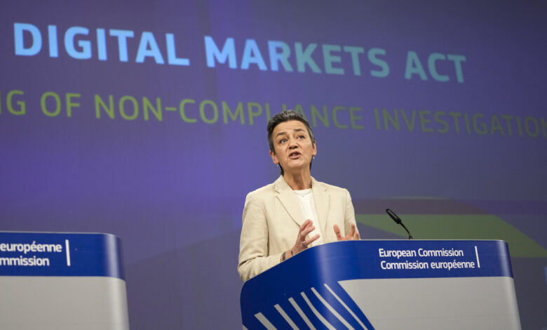 Η Ευρωπαϊκή Επιτροπή ανακοίνωσε την επιβολή προστίμων ύψους 500 εκατομμυρίων ευρώ στην Apple και 200 εκατομμυρίων ευρώ στη Meta για παραβιάσεις του κανονισμού DMA, που ρυθμίζει τις ψηφιακές υπηρεσίες στην ΕΕ, καθώς οι δύο εταιρείες χαρακτηρίζονται ως «gatekeepers» (ελεγκτές πρόσβασης).