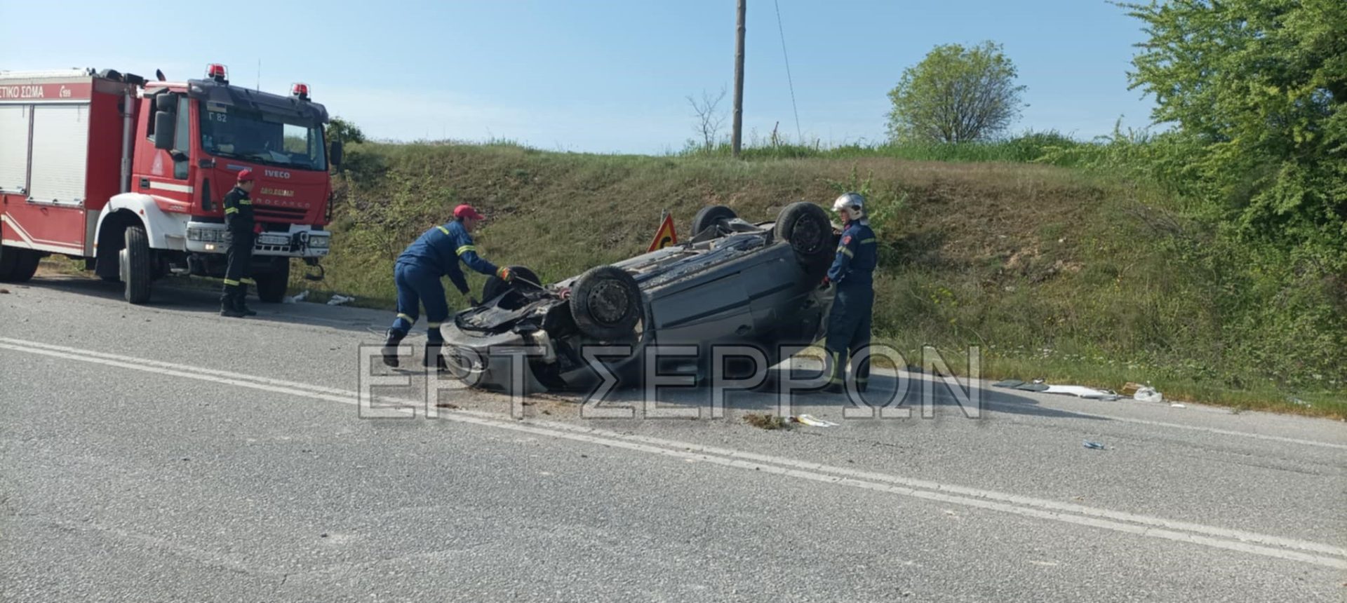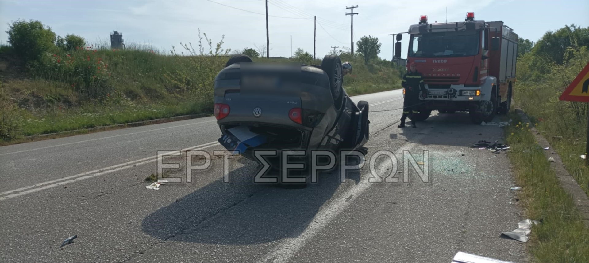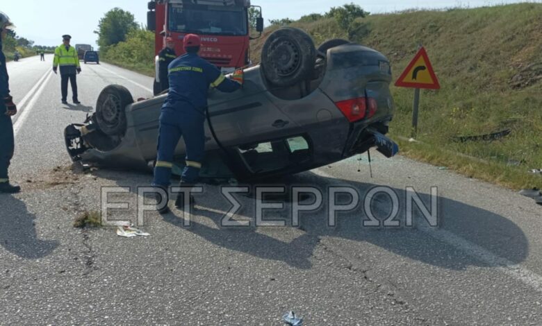 Σέρρες: Αυτοκίνητο βγήκε εκτός δρόμου και αναποδογύρισε