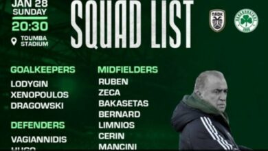 Χωρίς του Σένκεφελντ, Παλάσιος και Χουανκάρ στην αποστολή, θα παραταχθεί ο Παναθηναϊκός στο αυριανό (28/1, 20:30) ντέρμπι κορυφής με τον…