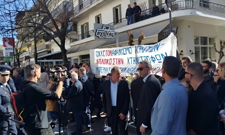 Όπως αναφέρει το ertnews.gr, οι αγρότες έστησαν τη δική τους εξέδρα ακριβώς απέναντι από αυτή των επισήμων και ύψωσαν το πανό τους με την ολοκλήρωση της παρέλασης. Η διαμαρτυρία ήταν ειρηνική σε όλη τη διάρκεια της παρέλασης και μετά την ολοκλήρωση πραγματοποιήθηκε πορεία προς την πλατεία.