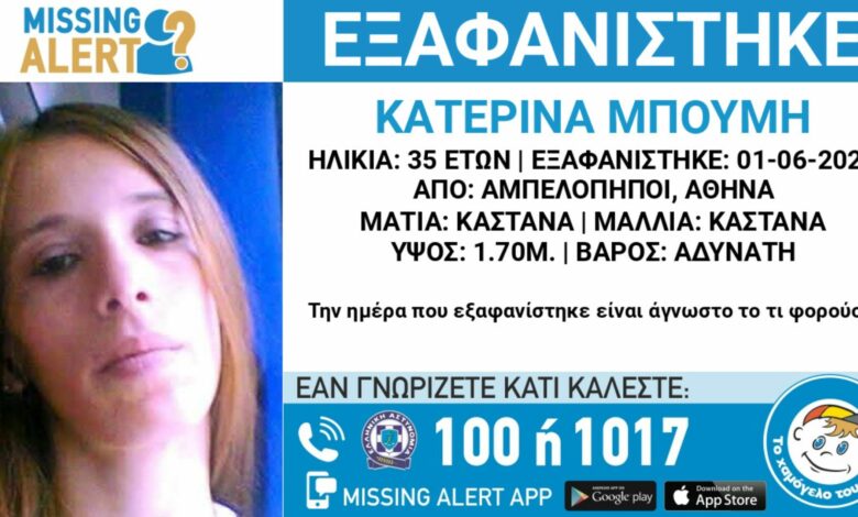 Σύμφωνα με όσα αναφέρει η ανάρτηση η 35χρονη Κατερίνα Μπούμη εξαφανίστηκε την 1/6/2025, από την περιοχή των Αμπελοκήπων, στην Αθήνα.