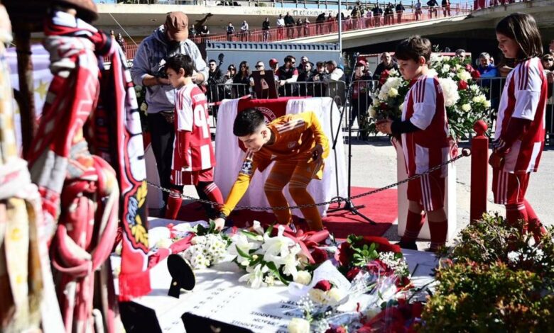 Με το γνωστό σύνθημα «αδέλφια ζείτε, εσείς μας οδηγείτε» στο σημείο της τραγωδίας βρέθηκαν για μία ακόμη χρονιά για να τιμήσουν τη μνήμη των χαμένων οπαδών του Ολυμπιακού, πλήθος κόσμου και σύσσωμο το ποδοσφαιρικό τμήμα των «ερυθρόλευκων», προεξάρχοντος του μεγαλομετόχου της ΠΑΕ Βαγγέλη Μαρινάκη.