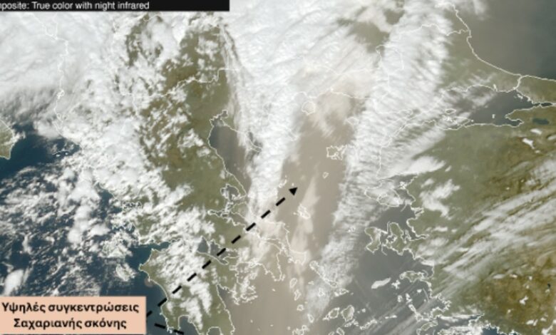 Αφρικανική σκόνη: Η δορυφορική εικόνα του meteo – Ριπές ανέμου που ξεπερνούν τα 120 χλμ/ώρα