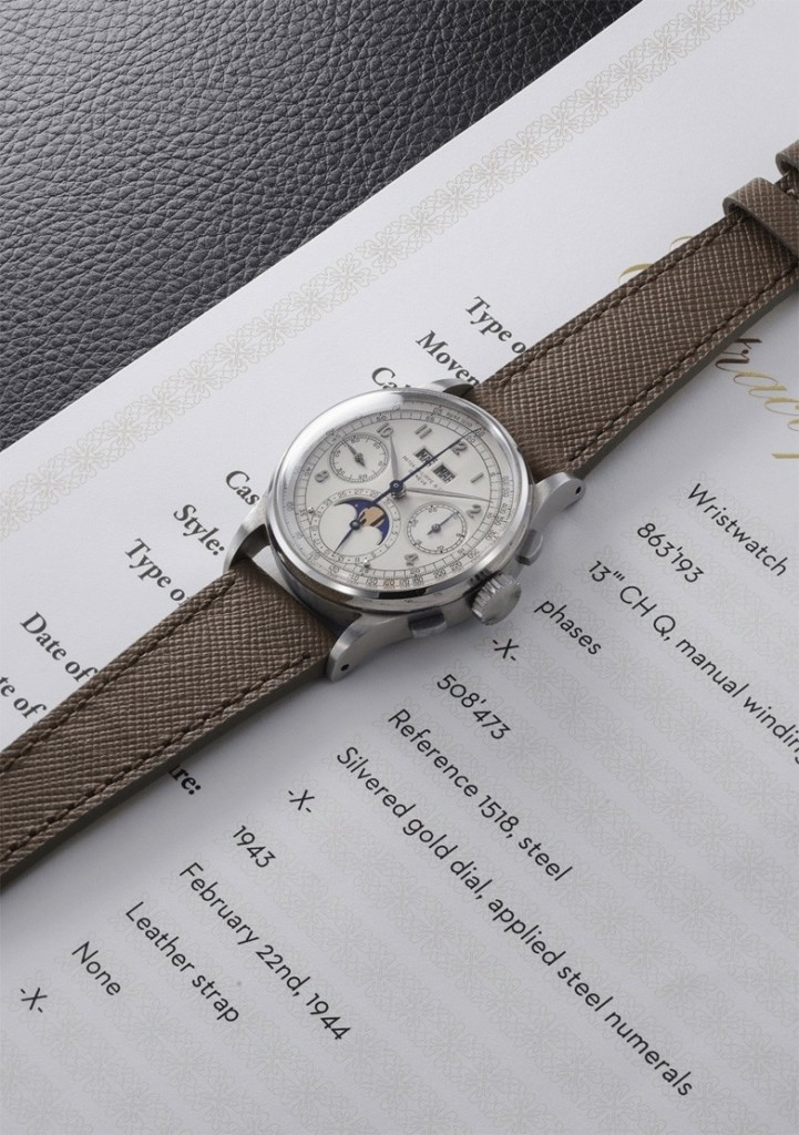 Το Patek Philippe Perpetual Calendar Reference 1518, κατασκευασμένο το 1943, είναι ένα από τα μόλις τέσσερα γνωστά δείγματα που φτιάχτηκαν από ανοξείδωτο χάλυβα, κάτι ιδιαίτερα σπάνιο, που το έκανε ακόμη πιο περιζήτητο από τα ρολόγια που είναι φτιαγμένα από χρυσό.