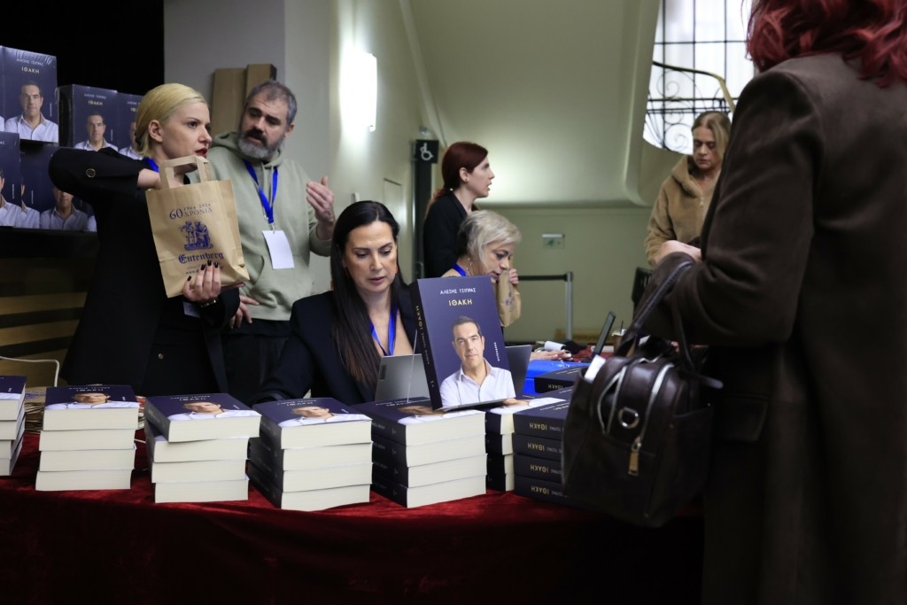 Τεράστια είναι η ουρά που έχουν σχηματίσει δεκάδες πολίτες έξω από το θέατρο «Παλλάς» όπου στις επτά το βράδυ θα ξεκινήσει η παρουσίαση του βιβλίου «Ιθάκη» του Αλέξη Τσίπρα.