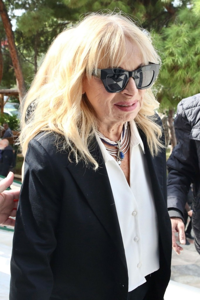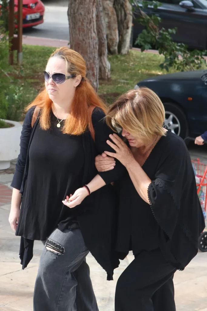 Συντετριμμένη η επί 25 χρόνια σύντροφός του, Κατερίνα, έφτασε στον προαύλιο χώρο της εκκλησίας υποβασταζόμενη από την ανιψιά της.