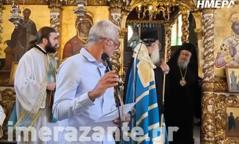 «Με τα πουκάμισα έξω ήρθες να βγάλεις λόγο τέτοια ημέρα στην εκκλησία. Απαράδεκτος. Αίσχος» είπε ο κ. Χρυσόστομος στον εκπαιδευτικό, ενώ επικράτησε σιωπή.
