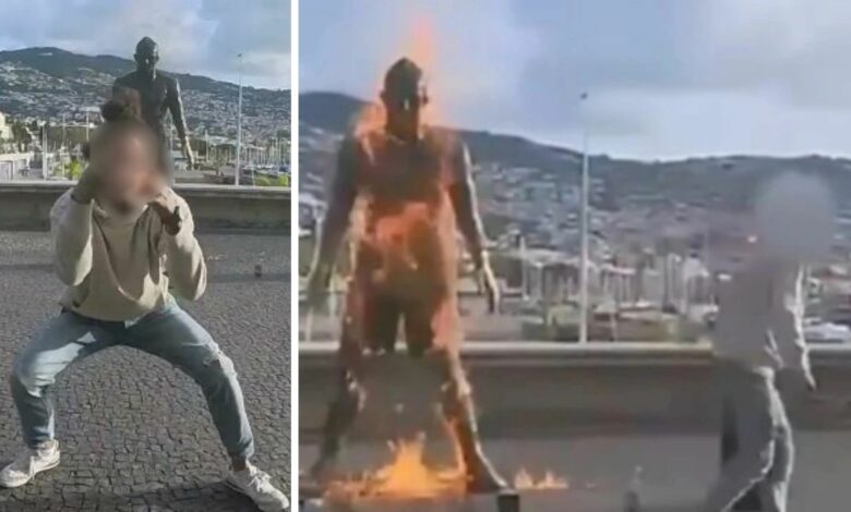 Man films himself setting fire to Cristiano Ronaldo Statue in Portugal!