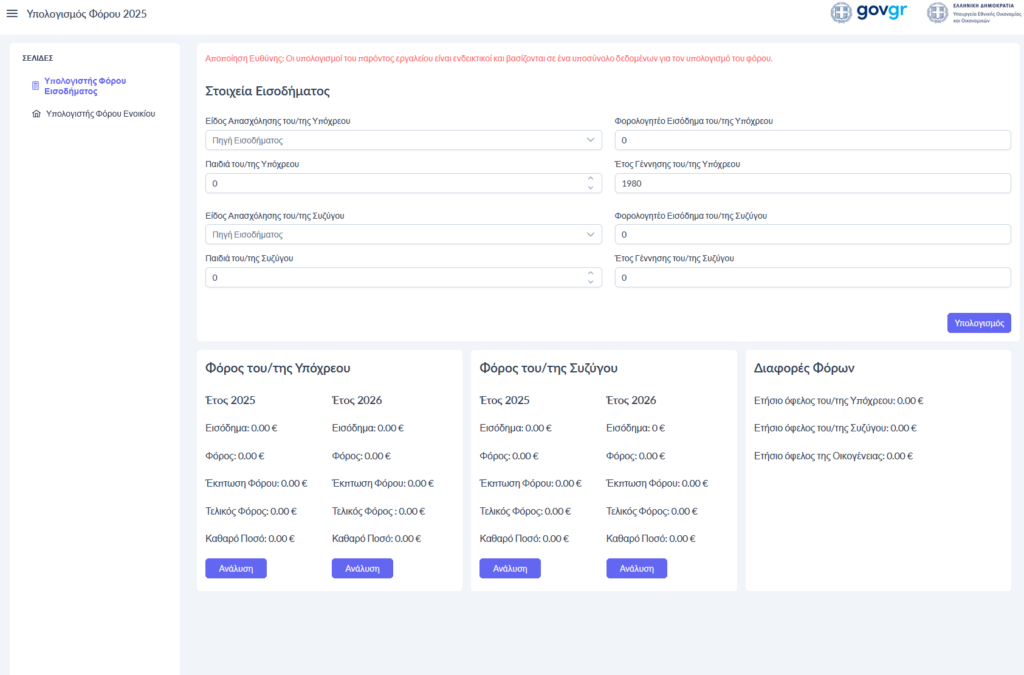 Σε μερικά δευτερόλεπτα, κάθε πολίτης μπορεί να διαπιστώσει με σχετική ακρίβεια τις μειώσεις στη φορολογία που θα ισχύσουν από το 2026.
