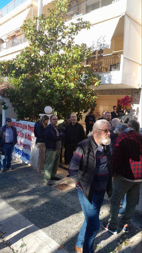 Εξω από το σπίτι υπάρχει κόσμος και γίνεται προσπάθεια να εμποδιστεί η έξωση, ενώ επικρατεί ένταση λόγω της απάνθρωπης ενέργειας του συγκεκριμένου fund.