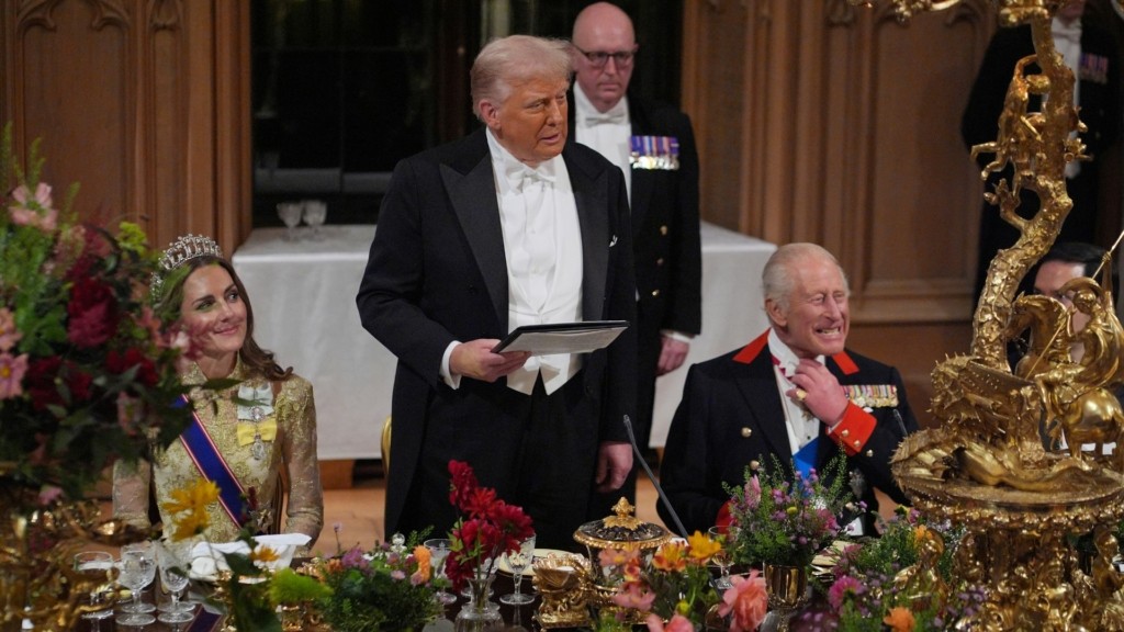 Ο βασιλιάς Κάρολος φιλοξένησε τον Τραμπ και τη σύζυγό του, Μελάνια, στο Κάστρο του Γουίνδσορ και πέρασαν μαζί μια ολόκληρη ημέρα. Στην ομιλία του στο επίσημο δείπνο, ο μονάρχης αναφέρθηκε στην Ουκρανία – μια παρέμβαση που σχολιάστηκε για τον πολιτικό της τόνο.