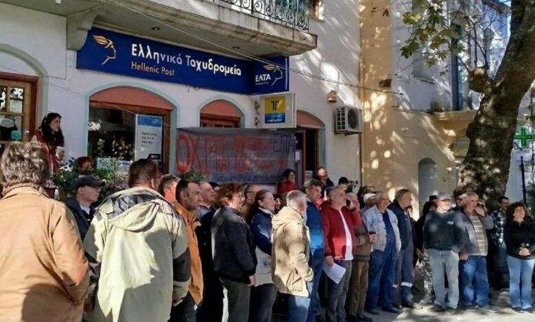 Άρχισαν οι αντιδράσεις: Πλήθος κόσμου έξω από τα ΕΛΤΑ στην Ικαρία, διαμαρτύρονται για το κλείσιμό τους