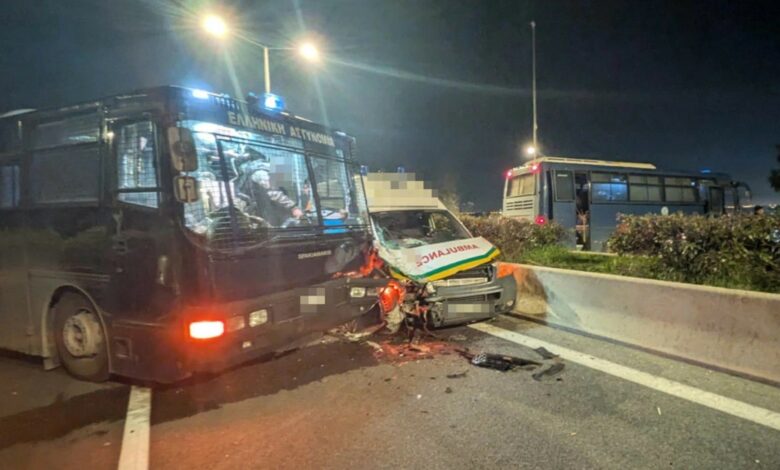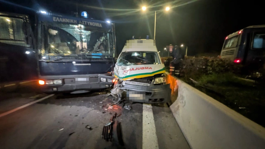 Σύμφωνα με πληροφορίες, τραυματίστηκε μέλος του πληρώματος του ασθενοφόρου που καθόταν στη θέση του συνοδηγού.