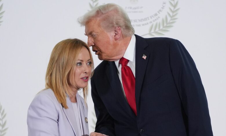 Ο Ντόναλντ Τραμπ έπλεξε το εγκώμιο της Ιταλίδας πρωθυπουργού Τζόρτζια Μελόνι χαρακτηρίζοντάς την «έμπνευση για όλους»., ενώ δε δίστασε να την φλερτάρει δημόσια στη σύνοδο κορυφής για τη Γάζα.