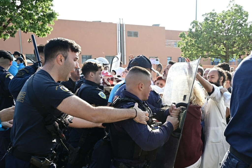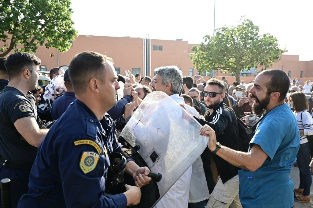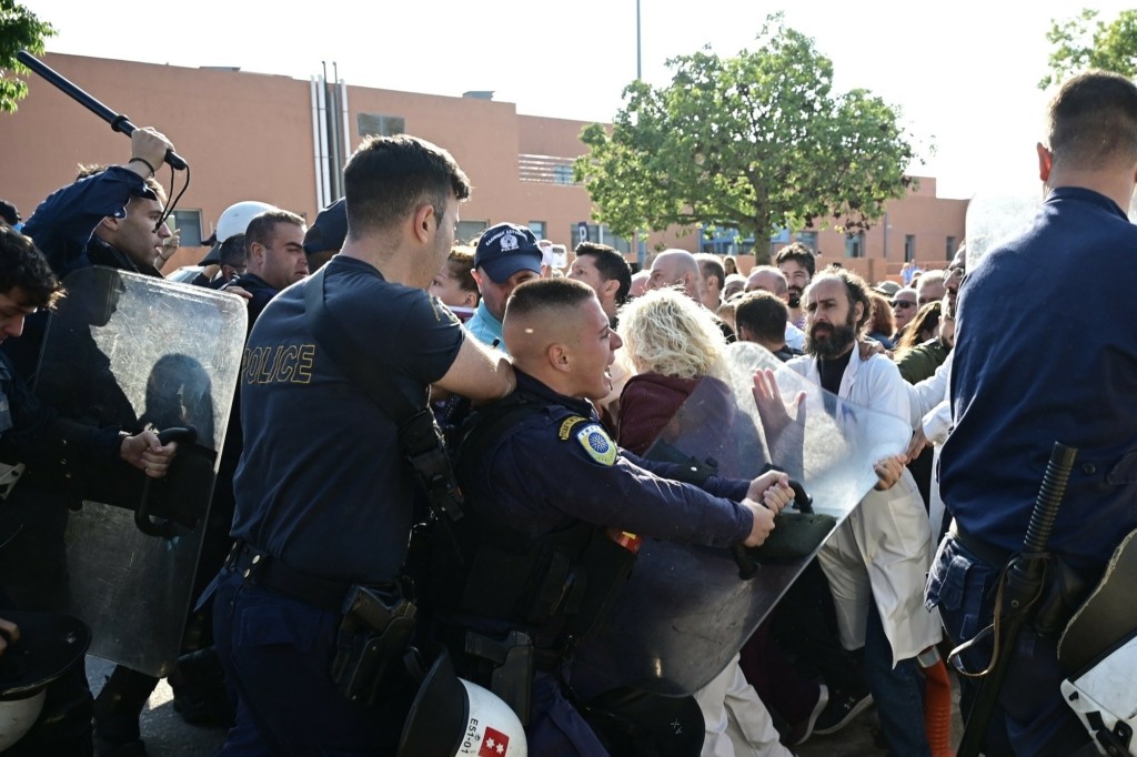 Κατά τη διάρκεια της επίσκεψης, η αστυνομία επιτέθηκε σε υγειονομικούς που διαμαρτύρονταν για τις συνθήκες στα νοσοκομεία και τη διαρκή υποβάθμιση της δημόσια υγείας.