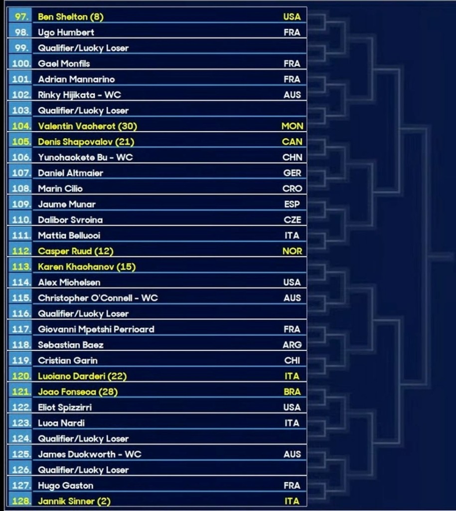 Στα προημιτελικά πέφτει πάνω στον Τζόκοβιτς αν φτάσουν και οι δύο μέχρι εκεί, ενώ στα ημιτελικά λογικά θα είναι ο κάτοχος του τίτλου, Γιάνικ Σίνερ.