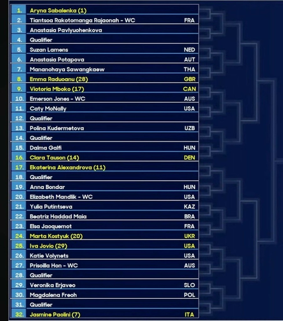 Η Μαρία Σάκκαρη θα αντιμετωπίσει τη Λεόλια Ζανζάν. Νο101, αλλά μετά έχει πολύ δύσκολο εμπόδιο καθώς θα πέσει πάνω είτε στην Μίρα Αντρέεβα, Νο8 στον κόσμο, είτε στην κολλητή της και πάντα επικίνδυνη, Ντόνα Βέκιτς.