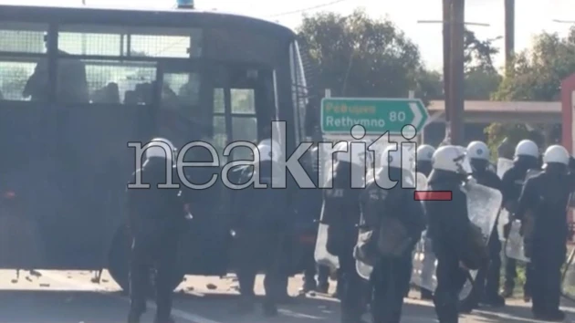 Όπως αναφέρει η neakriti.gr οι αστυνομικοί προχώρησαν σε χρήση χημικών και καπνογόνων για να απωθήσουν τους συγκεντρωμένους, ενώ εκτοξεύτηκαν και πέτρες προς τις κλούβες της ΕΛ.ΑΣ.