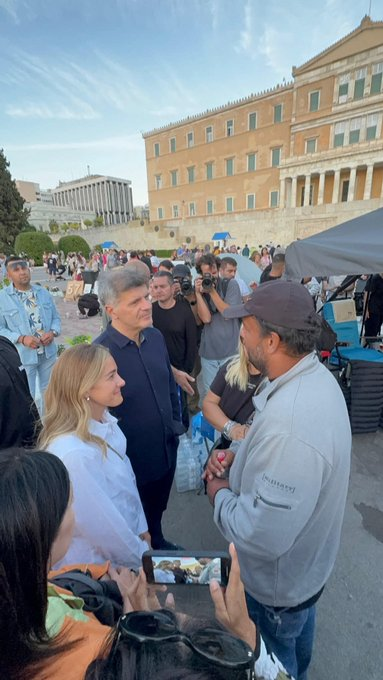 Την υποστήριξή τους στον Πάνο Ρούτσι εξέφρασαν Νατάσσα Μποφίλιου και Φοίβος Δεληβοριάς έξω από τη Βουλή νωρίτερα την Παρασκευή (26/09).