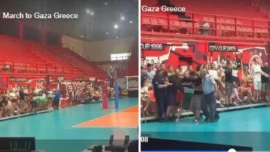 Bόλεϊ: Σημαίες της Παλαιστίνης στο φιλικό της Ελλάδας με το Ισραήλ στο «Μ. Μερκούρη – Προσαγωγές από την αστυνομία (Video)