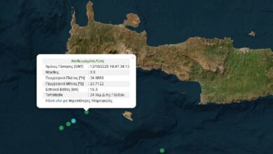 Σεισμός μεγέθους 3,9 Ρίχτερ σημειώθηκε το απόγευμα της Κυριακής (12/10) νότια της Κρήτης. Σύμφωνα με το Γεωδυναμικό Ινστιτούτο, ο σεισμός…