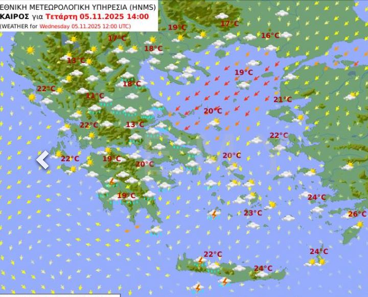Η πρόγνωση για την Τετάρτη 5-11-2025