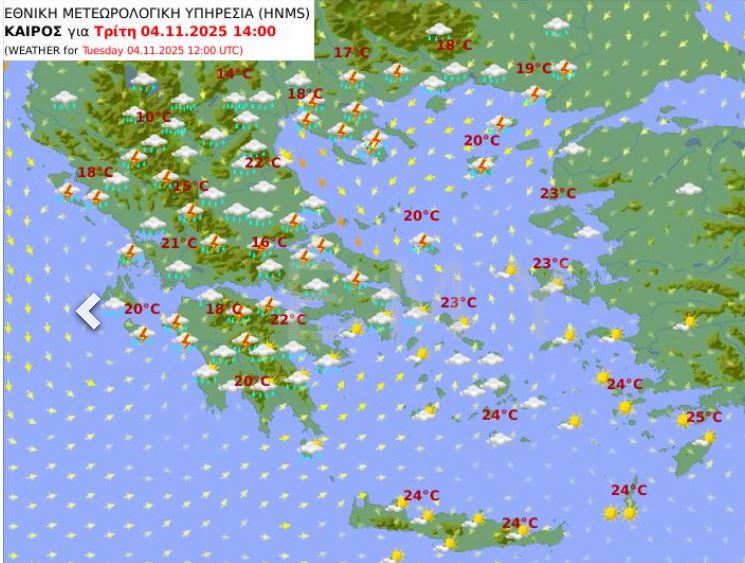 Η πρόγνωση για τη Τρίτη 4-11-2025