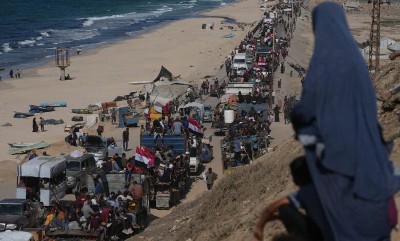Στη Λωρίδα της Γάζας, που έχει υποστεί πελώρια καταστροφή τα δυο χρόνια του πολέμου, η πολιτική προστασία ανακοίνωσε χθες Σάββατο ότι πάνω από 500.000 άνθρωποι που είχαν εκτοπιστεί επέστρεψαν στο βόρειο τμήμα του θυλάκου αφότου άρχισε να εφαρμόζεται η κατάπαυση του πυρός προχθές Παρασκευή.