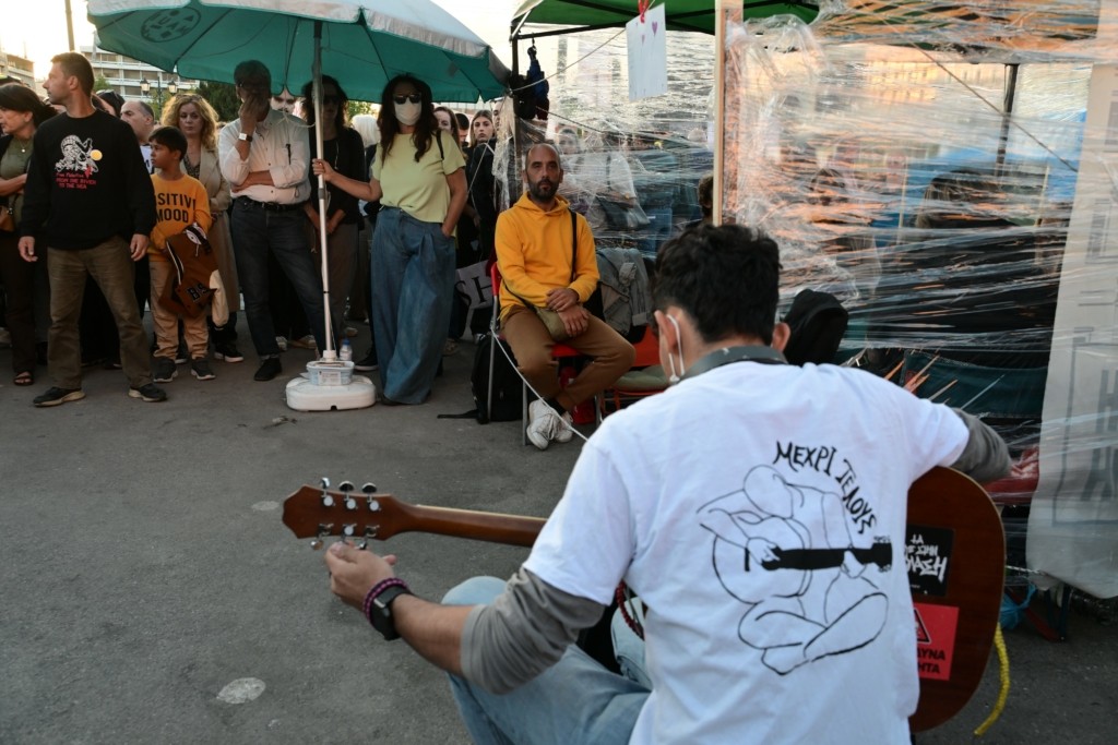 Η συγκέντρωση συνεχίζεται και τη νύχτα με ένα μουσικό κάλεσμα σε ήρεμους τόνους, με τον Πάνο Ρούτσι να μένει στη σκηνή του καθώς η υγεία του έχει επιδεινωθεί και χρειάζεται προσοχή.