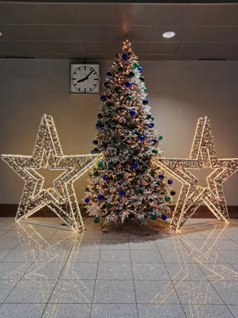 Χριστουγεννιάτικα δέντρα στολίστηκαν σε όλους τους σταθμούς του Μετρό, με τον σταθμό «Σύνταγμα», στην καρδιά του δικτύου, να ξεχωρίζει για τον λαμπερό στολισμό και το εντυπωσιακό δέντρο, ενώ για τον σταθμό «Πειραιάς» επιλέχθηκε ένα Χριστουγεννιάτικο καράβι.
