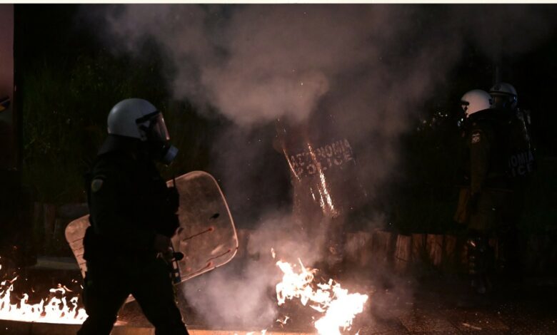 Σύμφωνα με πληροφορίες, ομάδα νεαρών πέταξε φωτοβολίδες προς τους αστυνομικούς, οι οποίοι απάντησαν με  χρήση χημικών και χειροβομβίδες κρότου λάμψης.