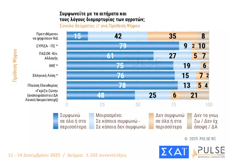Δημοσκόπηση Pulse: Απώλειες η ΝΔ λόγω αγροτών, η συντριπτική πλειοψηφία υπέρ των κινητοποιήσεων