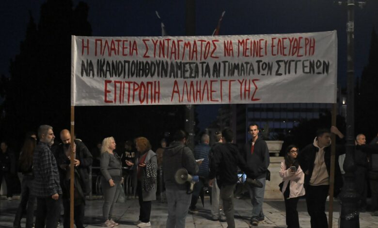 «Έχουμε ένα κάλεσμα, σχετικά με όλο αυτό που συμβεί για το χώρο μπροστά από το μνημείο του Αγνώστου Στρατιώτη. Σήμερα πρέπει εδώ πέρα να γραφτεί και το 58ο θύμα, το οποίο είναι η Δημοκρατία. Δολοφονήσανε και τη Δημοκρατία. Βέβαια, μαζί με τα 57 παιδιά, το 58 είναι η δολοφονία της Δημοκρατίας.Έχουμε γράψει εδώ πέρα. Είναι ένας χώρος για να μπορέσουμε να αντιδράσουμε, να διαμαρτυρηθούμε κόσμια όσο μπορούμε, για τη δολοφονία αυτών των παιδιών. Κρατική δολοφονία, έτσι δεν είναι;» ανέφερε.