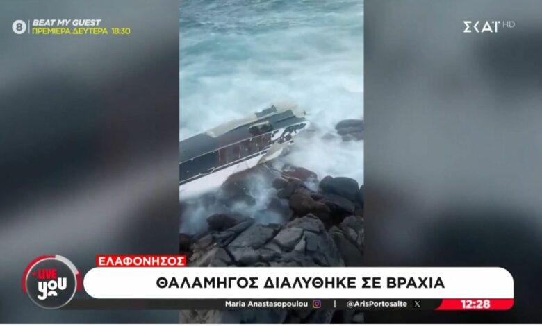 Ελαφόνησος: Θαλαμηγός διαλύθηκε στα βράχια, ψαράδες έσωσαν τους επιβαίνοντες (video)
