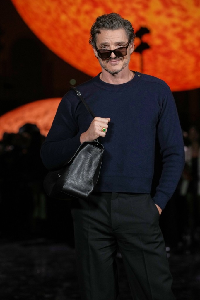 Τα βλέμματα τράβηξε και ο Πέδρο Πασκάλ που φόρεσε ένα μαύρο υφασμάτινο παντελόνι με ένα σκούρο μπλε πουλόβερ, κρατούσε τσάντα χειρός και φορούσε γυαλιά ηλίου, αλλά ξεχώρισε και το δαχτυλίδι με το πράσινο σμαράγδι.