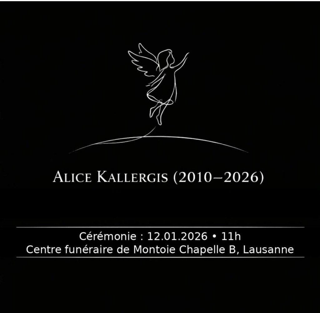 Φίλοι και συγγενείς της Αλίκης Καλλέργη θα πουν το τελευταίο αντίο στην αγαπημένη τους, την Δευτέρα 12 Ιανουαρίου 2026 στις 11:00 το πρωί στην κηδεία της στην Λωζάννη της Ελβετίας.