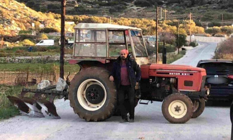 Πρόκειται για τον μόνο αγρότη με τρακτέρ στην Αιγιάλη, γεγονός που καθιστά το μπλόκο εξαιρετικά συμβολικό και τη διαμαρτυρία του μοναδική.