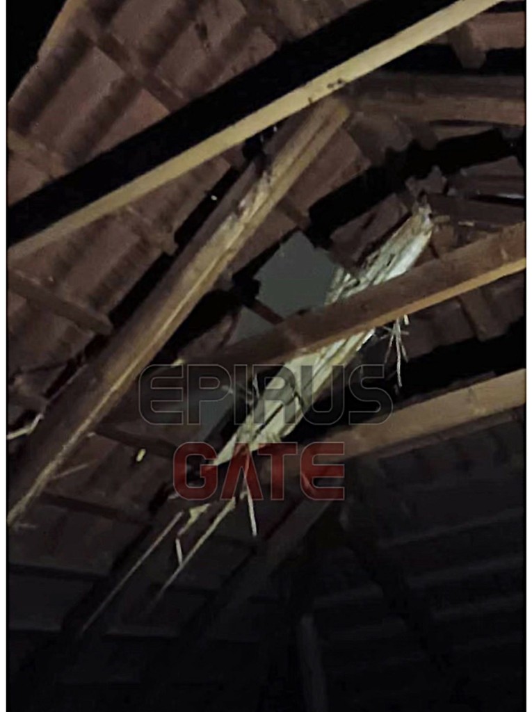 Έντονα καιρικά φαινόμενα στην Ήπειρο – Κεραυνός άνοιξε τρύπα σε στέγη πολυκατοικίας (Photo)