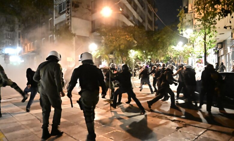 Επεισόδια μεταξύ των ΜΑΤ και διαδηλωτών στο κέντρο της Αθήνας