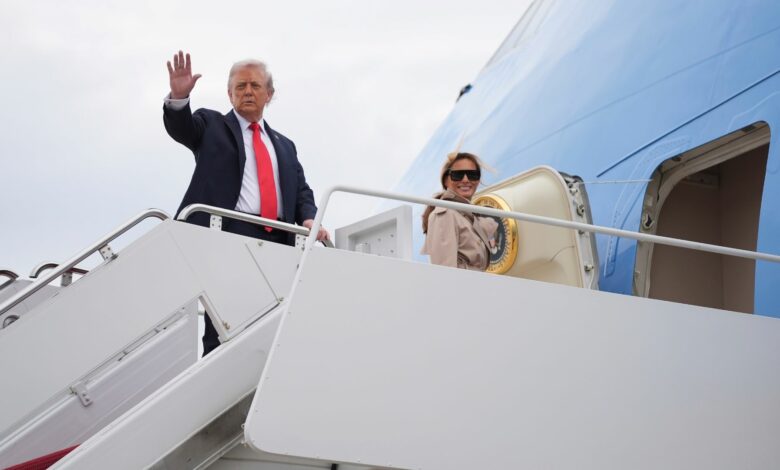 Ο Τραμπ και η Πρώτη Κυρία Μελάνια έφτασαν τελικά στο Ηνωμένο Βασίλειο χωρίς άλλο περιστατικό χθες το βράδυ για την επίσημη επίσκεψή τους. Απόψε θα συναντήσουν τον βασιλιά Κάρολο και τη βασίλισσα Καμίλα σε επίσημο δείπνο.