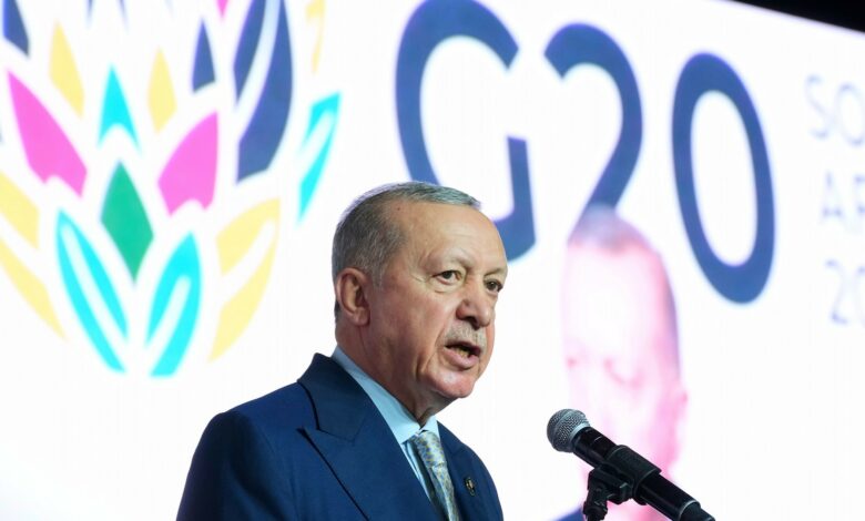 Μιλώντας στη συνέντευξη Τύπου μετά τη Σύνοδο των G20 στο Γιοχάνεσμπουργκ, ο Ερντογάν υπογράμμισε ότι στην επικείμενη συνομιλία θα θέσει εκ νέου το θέμα της επισιτιστικής ασφάλειας και της ανάγκης για διάλογο Μόσχας – Κιέβου. «Πέρυσι καταφέραμε να ανοίξουμε τον δρόμο μέσω της συμφωνίας για τα σιτηρά, αλλά η διαδικασία σταμάτησε. Αύριο θα ζητήσω από τον κ. Πούτιν να την επανεκκινήσουμε», δήλωσε χαρακτηριστικά.