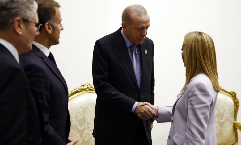 Όταν ο Ερντογάν χαιρέτισε δια χειραψίας την ιταλίδα πρωθυπουργό, φέρεται να είπε στη Μελόνι: «Πρέπει να βρω έναν τρόπο να σου κόψω το κάπνισμα».