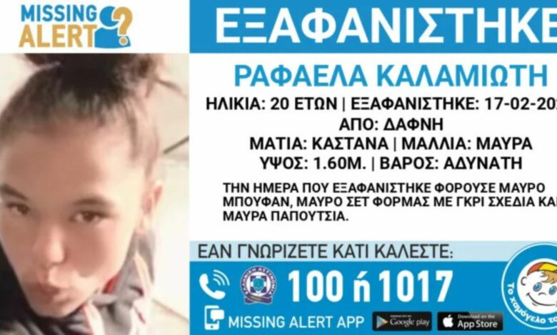 Εξαφάνιση 20χρονης από τη Δάφνη – Missing Alert από το Χαμόγελο του Παιδιού