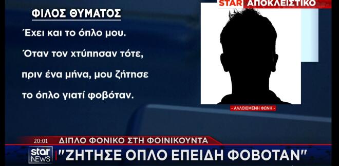 «Ο νεκρός έχει το όπλο μου. Όταν τον χτύπησαν τότε, πριν έναν μήνα, μου ζήτησε το όπλο γιατί φοβόταν. Φοβόταν και μου το ζήτησε για να μπορέσει να κοιμηθεί. Δεν έρχεται να σε πιστολιάσει ο άλλος για την περιουσία», ανέφερε ο φίλος του θύματος.