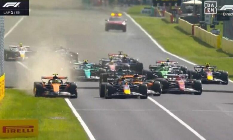 Με τον Μαξ Φερστάπεν να εκκινεί από την pole position και τον Λάντο Νόρις δίπλα του στη δεύτερη θέση, ο Ολλανδός πιλότος της Red Bull συνέκλινε προς την πλευρά του βρετανού αμέσως μετά τα «πράσινα φώτα» με αποτέλεσμα να τον στείλει στα χόρτα.