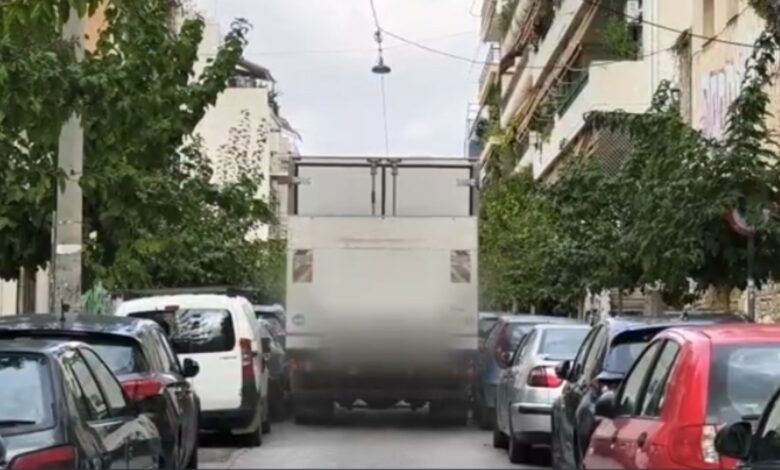 Αναστάτωση επικράτησε στα Εξάρχεια, όταν φορτηγό «φράκαρε» στην Καλλιδρομίου.