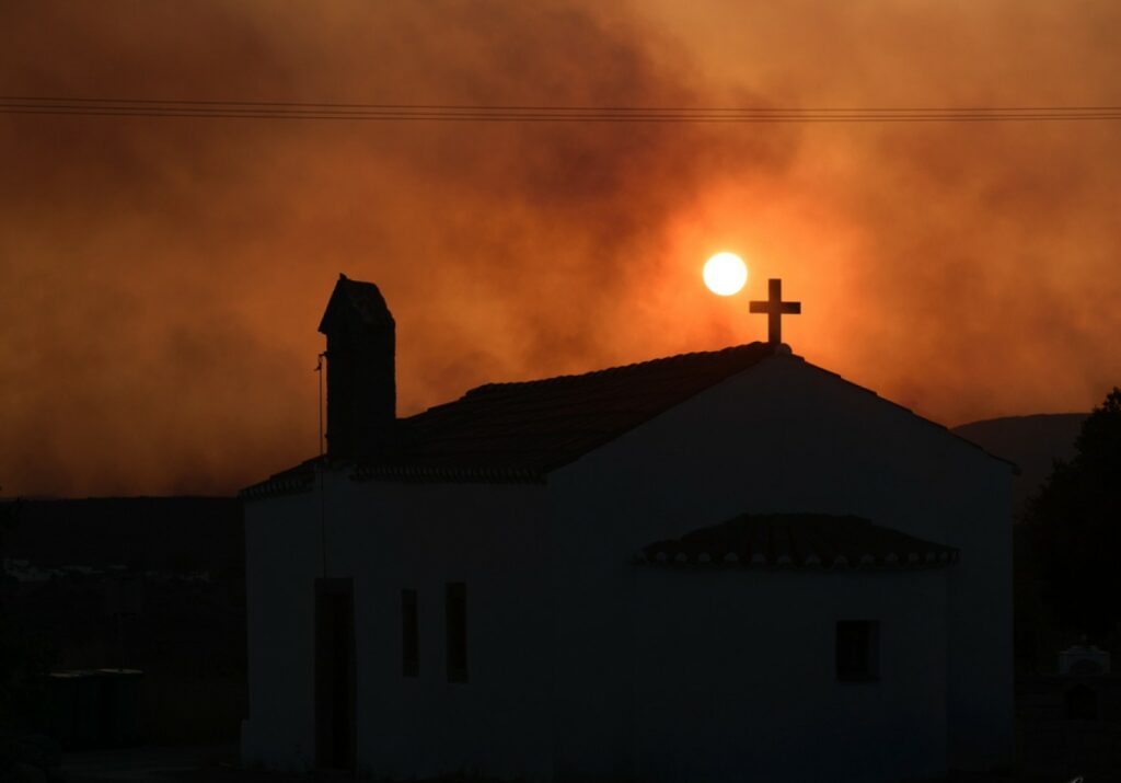 «Έχει καεί το μισό νησί» είπε χαρακτηριστικά μιλώντας στην ΕΡΤ, σημειώνοντας πως «κινδυνεύει μοναστήρι – αν δεν έρθουν εναέρια μέσα, θα καεί».