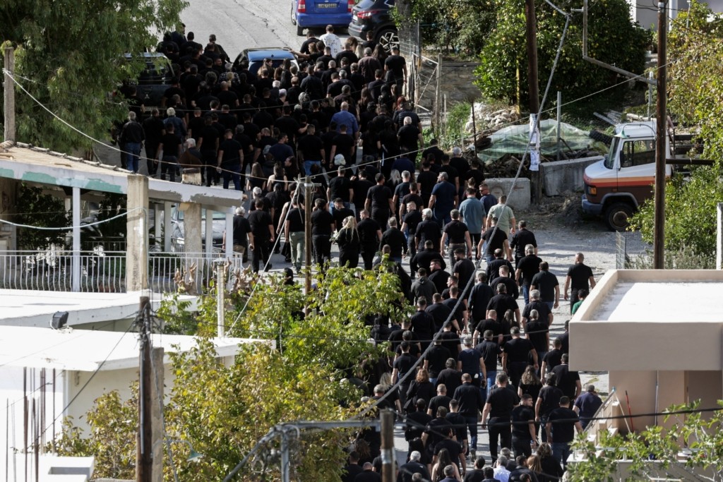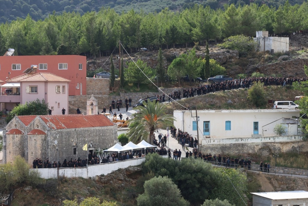 Πλήθος κόσμου έδωσε το ”παρών” στην κηδεία στον Ιερό Ναό Ευαγγελισμού της Θεοτόκου, με τις αστυνομικές δυνάμεις να είναι ενισχυμένες και παραταγμένες σε διάφορα σημεία του χωριού αλλά και της ευρύτερης περιοχής.