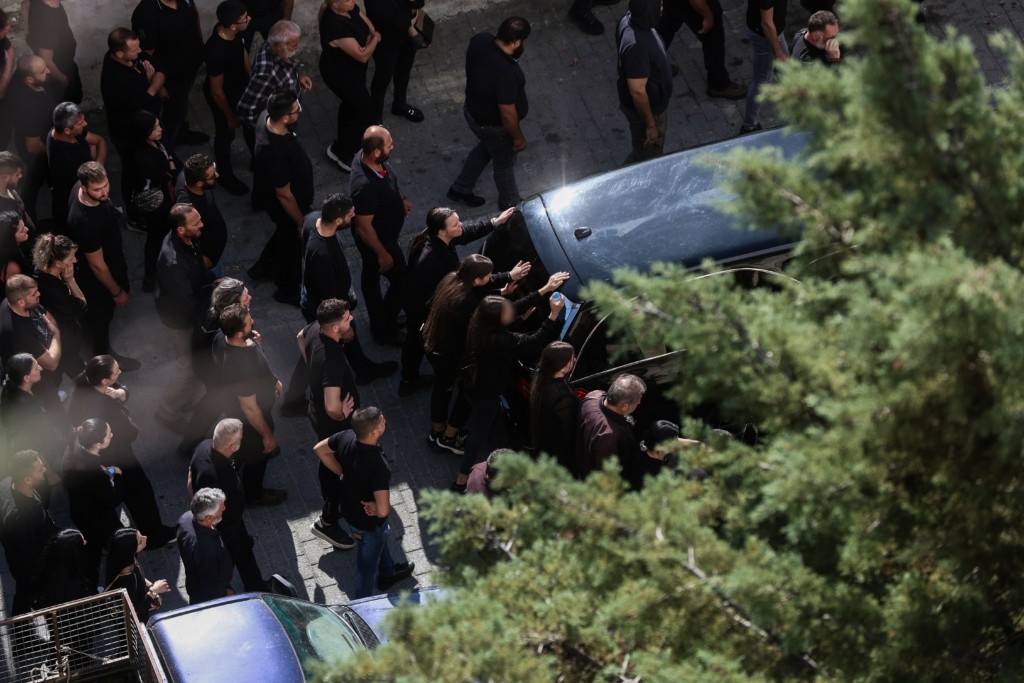 Κατά τη μεταφορά της σορού από το σπίτι προς την εκκλησία, η πομπή σταμάτησε για λίγο στο σημείο όπου εκτυλίχθηκε το μακελειό, με μέλη της οικογένειας του 39χρονου να ξεσπούν σε λυγμούς και φωνές. Στην κορυφή της πομπής, η χήρα, η μητέρα και οι αδελφές του 39χρονου.
