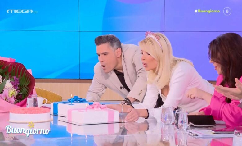 Οι συνεργάτες τους στην εκπομπή τούς επιφύλασσαν, μάλιστα, μια μικρή έκπληξη, με τους δυο τους να σβήνουν τα κεράκια από τις τούρτες των γενεθλίων τους στο πλατό.